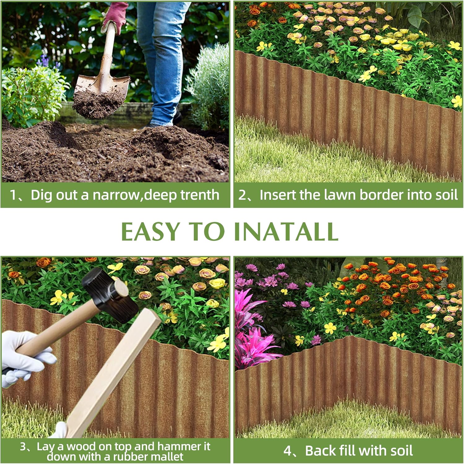 - SAFETY: The hemmed edges of this garden edging make it safe and easy to handle during installation and use, minimizing the risk of injury.