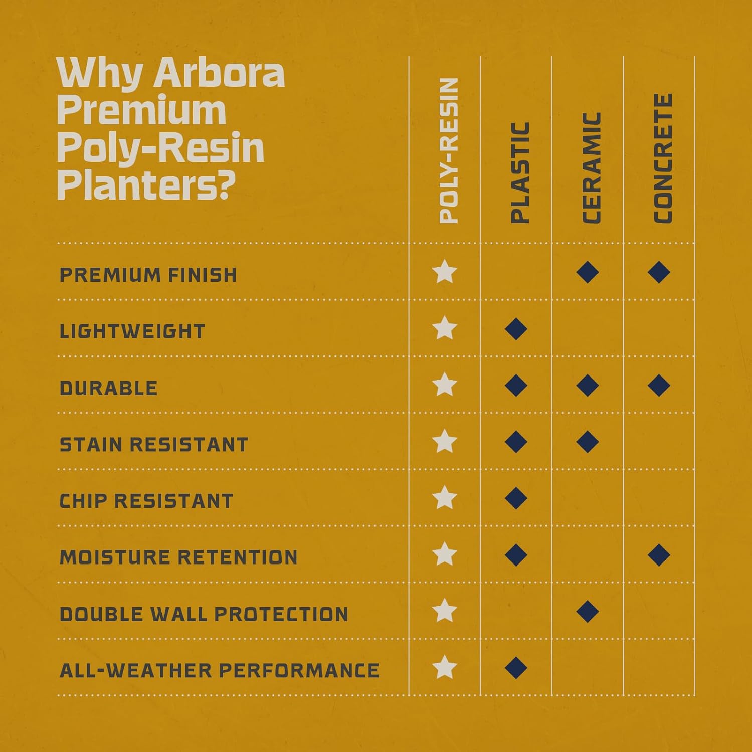 - Weatherproof & Durable - Constructed with resilient resin, Arbora pots are weatherproof and fade-resistant, maintaining their integrity season after season. Featuring double-walled insulation, experience superior plant protection in any weather.