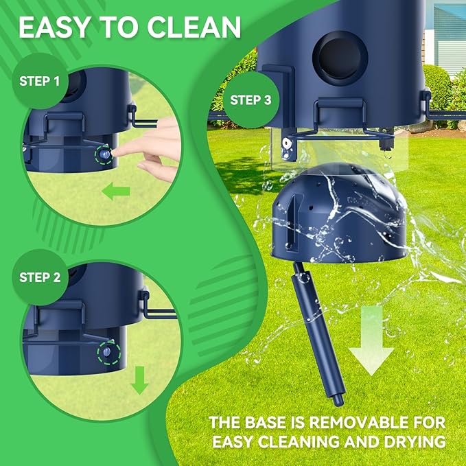 - EASY TO FILL AND CLEAN: The removable top and large opening make this squirrel-proof bird feeder easy to fill with seed, and the clear food tube allows you to monitor seed adequacy at all times. The outdoor bird feeder has a removable bottom and is very easy to clean, just rinse it with water!