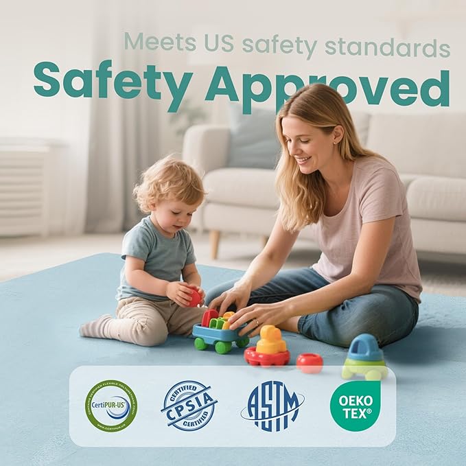 - Certified Safe & Non-Toxic: Rigorously tested for safety, this nursery rug meets OEKO-TEX(on shell), ASTM, and CPSIA standards, ensuring a safe, chemical-free surface for your baby to crawl, play, and explore.