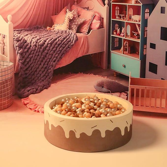 GOGOSO Ball Pit Balls Stars Moon Shapes Plastic Pitballs for Toddler Play Tent Baby Photo Props Kids Pool Water Toys Kiddie Pool Party Decor, Coffee+Beige Mix Cream Colors +Pearl Colors,200PCS