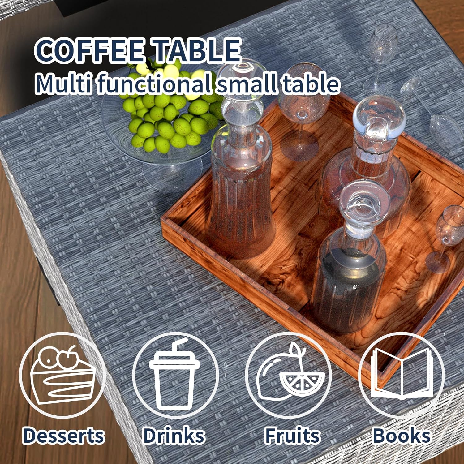 - 7-Piece Set: This patio set includes four center sofas, two corner sofas, and a functional coffee table. Whether you're hosting a gathering or enjoying a quiet moment outdoors, this set provides comfortable seating and a convenient surface for drinks, snacks, or decor