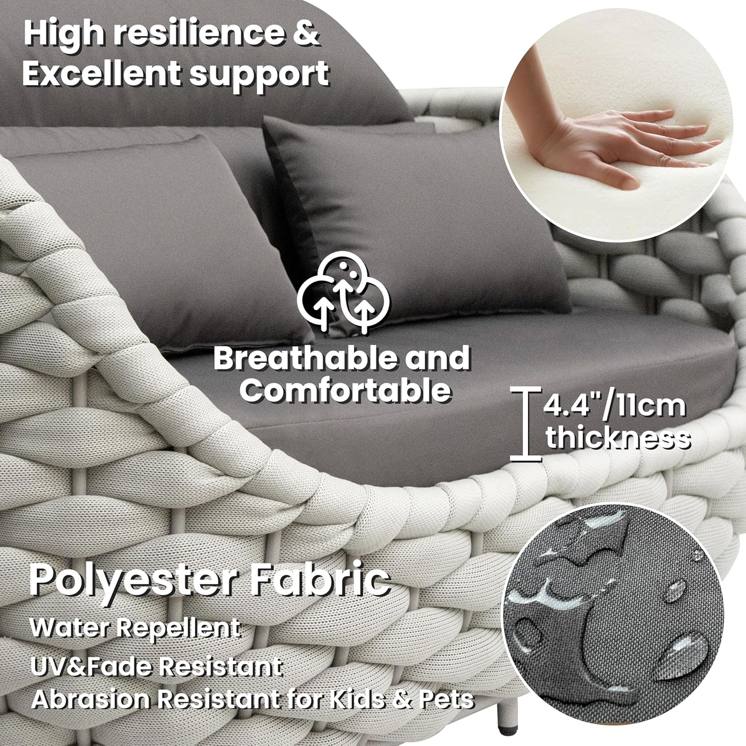 Aluminum Outdoor Seating Set: 5 Pieces Woven Rope Patio Furniture Conversation Set - Modern Deck Loveseat Set Cushioned - Assembled Metal Porch Lounge Set for Yard Garden Lanai Hotel Resort Pool