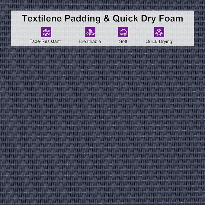 - Premium Textilene Fabric: It is filled with high-elasticity, quick- dry sponge and has excellent water permeability.