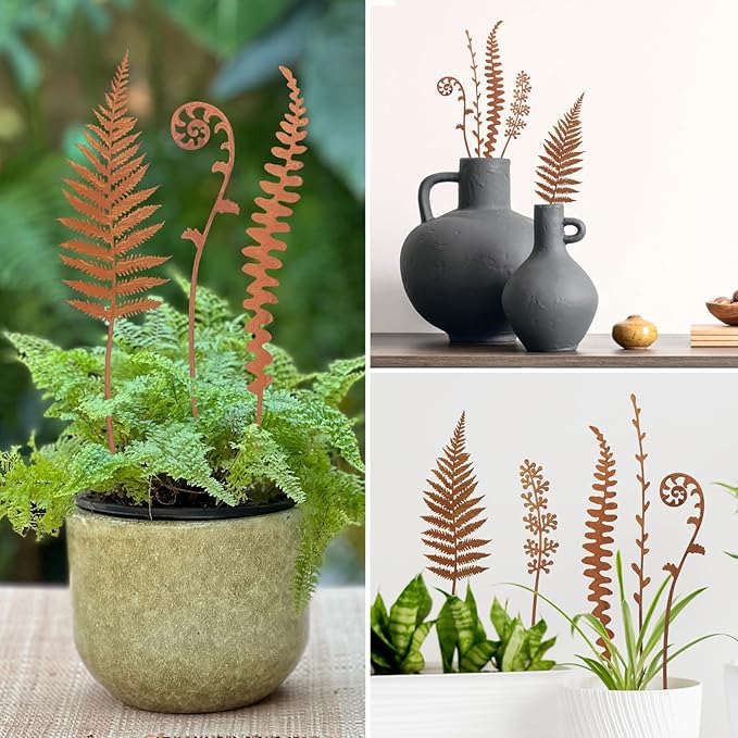 - METAL FLOWERS STAKES:This is a set of 5 decorative garden stakes , Product Dimensions measuring approximately 0.1x3x14inches。 This artistic metal a stunning focal point, perfect for gardens, yards, flower beds, fronts, or patios.Metal flowers for outside Made of durable metal and then rusted to give a beautiful vintage look.