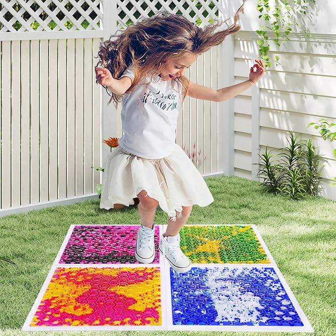 - Interactive Play with Liquid Tiles:Transform any space into an interactive playground using our 11.8x11.8in square floor liquid tiles! Featuring a unique gel-filled design, these colorful sensory tiles are perfect for children aged 3+ to explore and engage in sensory stimulation. Whether used as a liquid sensory mat or gel tiles, the smooth, flowing surface delivers endless fun and discovery