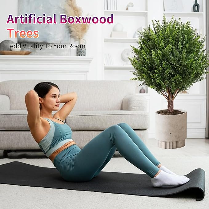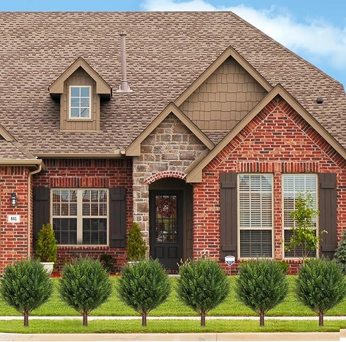 - 【Multi-medium Decoration Choice】This outdoor artificial plant cedar ball tree is realistic looking, each simulated shrub plant comes with high quality black ground spikes, you can put them into any matching pots or insert them directly into the soil, which can better match the style of your house