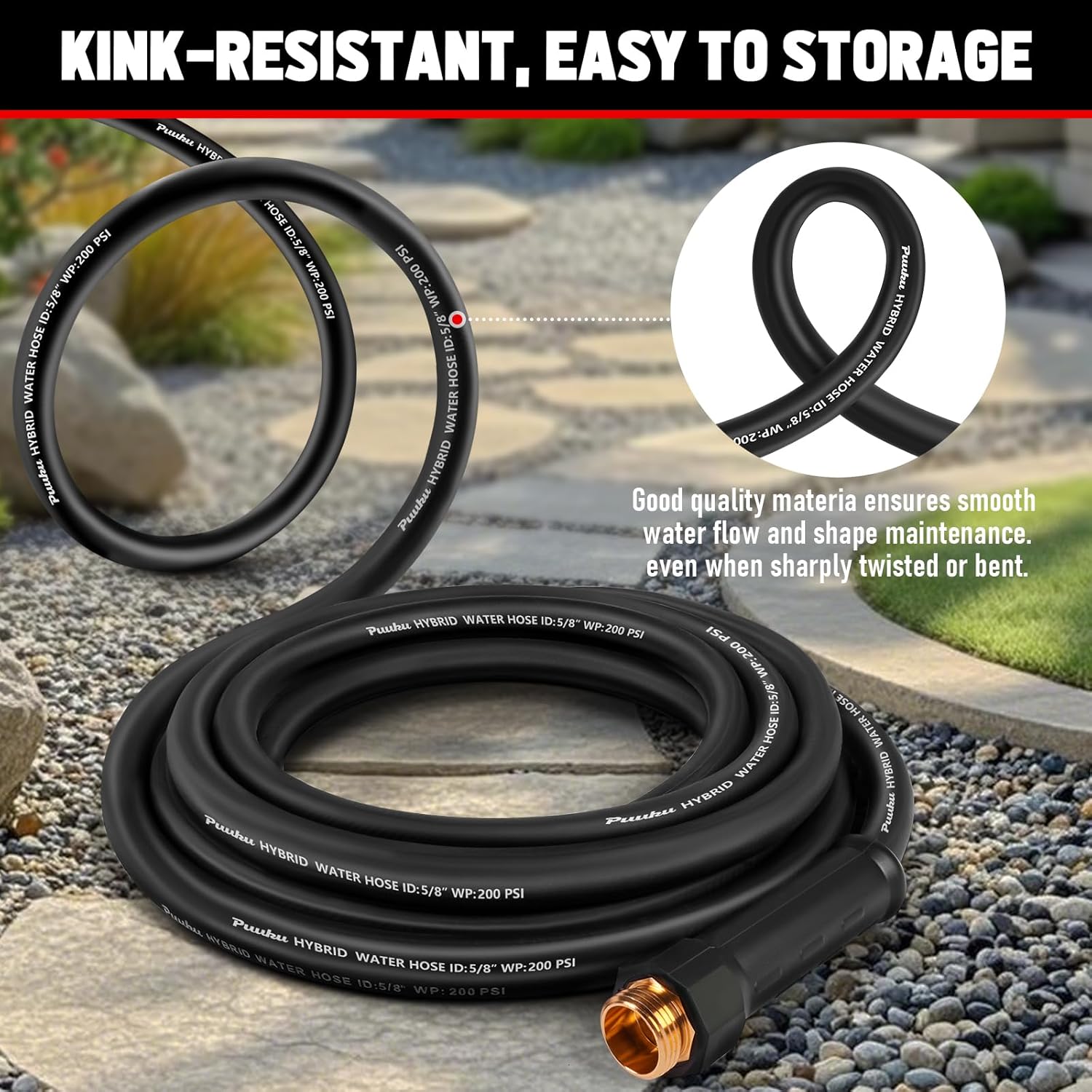 - Kink-Resistant & High Water Flow: Featuring anti-kink helical reinforcement, this heavy-duty hose withstands up to 600 PSI burst pressure / 200 PSI working pressure. The 5/8" standard diameter delivers high water flow, making it ideal for gardens, roofs and large yards—saving time compared to standard water hoses for outside.