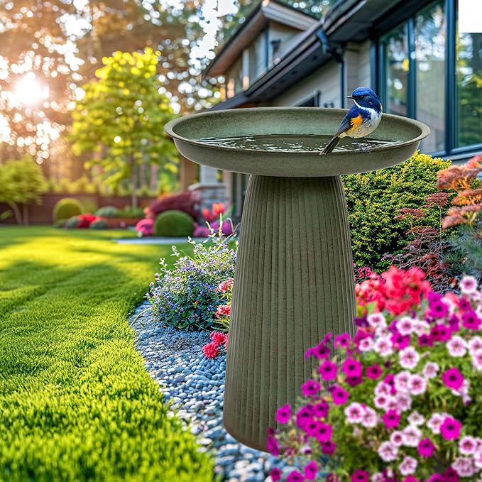 - VERSATILE OUTDOOR PLACEMENT: Use this modern bird bath on patios, in gardens, and near bird feeders to complete your setup. Best placed on level surfaces such as grass, soil, or stone.