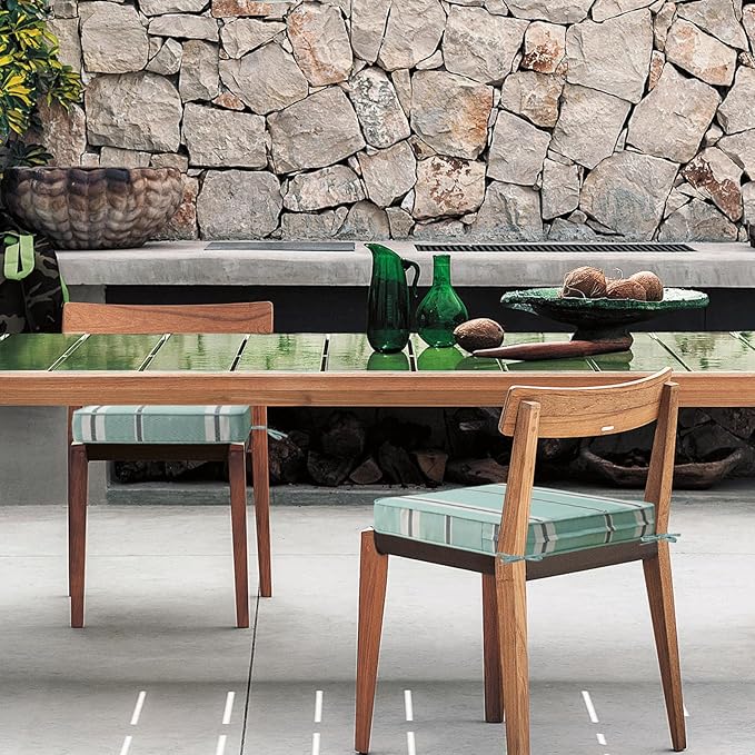 Square Corner Seat Cushions, 18.5" x 16" x 3", Set of 4, Indoor Outdoor Water Repellent Universal Chair Pads with Ties for Patio Furniture, Garden Deck Dining Chairs, Aqua Stripe