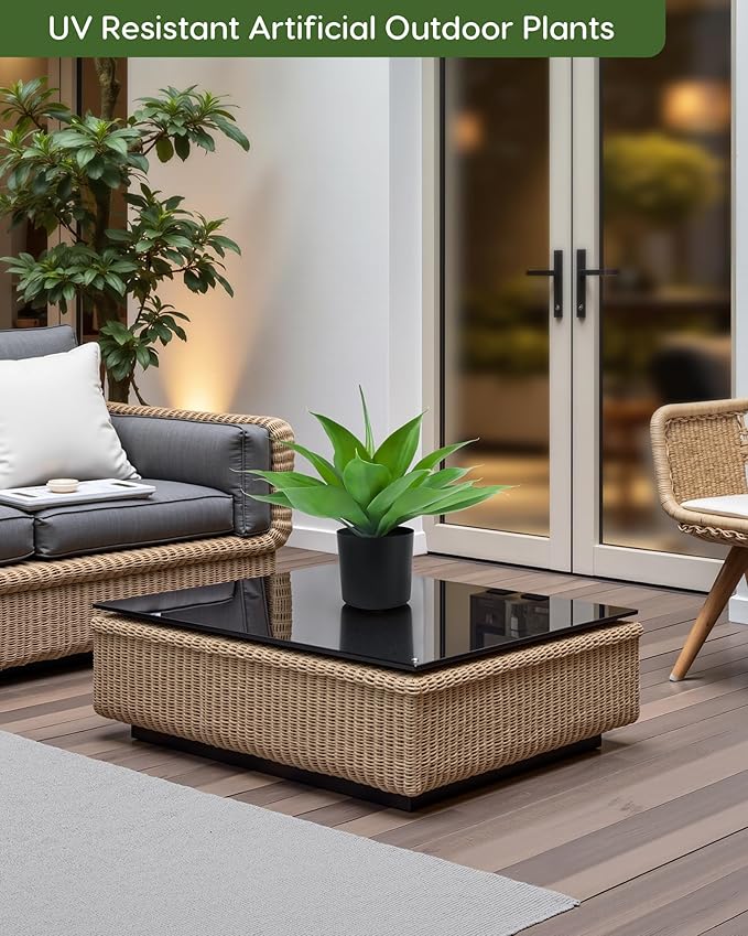 Velener Fake Agave with Black Pot, Artificial Plant Outdoor Agave - Fake Plants for Indoor and Outdoor Decor(16 Inch)