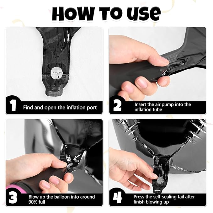 - Premium Quality – Made from high-grade metallic foil, these black foil round balloons are sturdy, reusable, and hold helium or air for long-lasting party decorations.