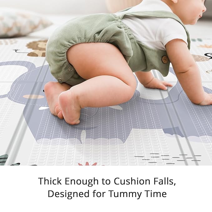 - Reversible Baby Floor Mat: The reversible baby mat for floor features attractive patterns on both sides, cute and lively animal patterns and simple gray starry sky theme. Our baby play mat foldable looks great in the living room and bedroom, kids mat will be a beautiful decoration for your room. In addition, the animal patterns help develop baby's cognitive ability, the raised pattern helps develop baby's perception and learning ability.