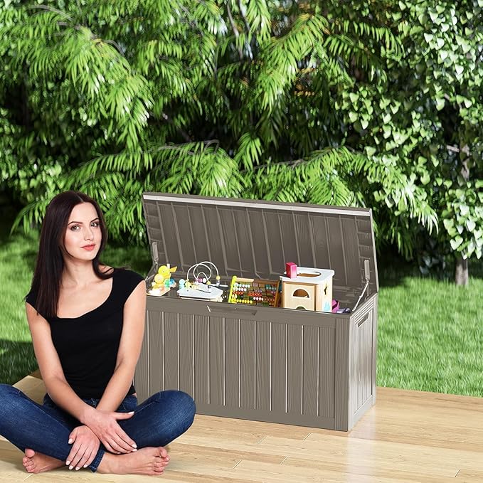 - Wide Range of Use: With a capacity of 100 gallons, this storage box can also be used as a patio seat, storage bench or footstool, whether it's family party supplies, camping equipment, gardening tools.