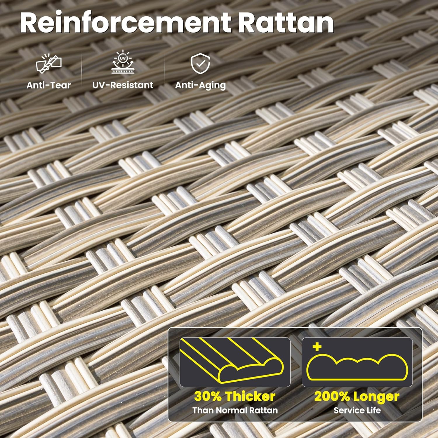 - All-weather Wicker Rattan: Our outdoor sofa sets have very durable PE wicker rattan for all-weather use and a natural texture with good coloring. The high-quality patio seating made of powder coated steel frame ensures good strength and stability