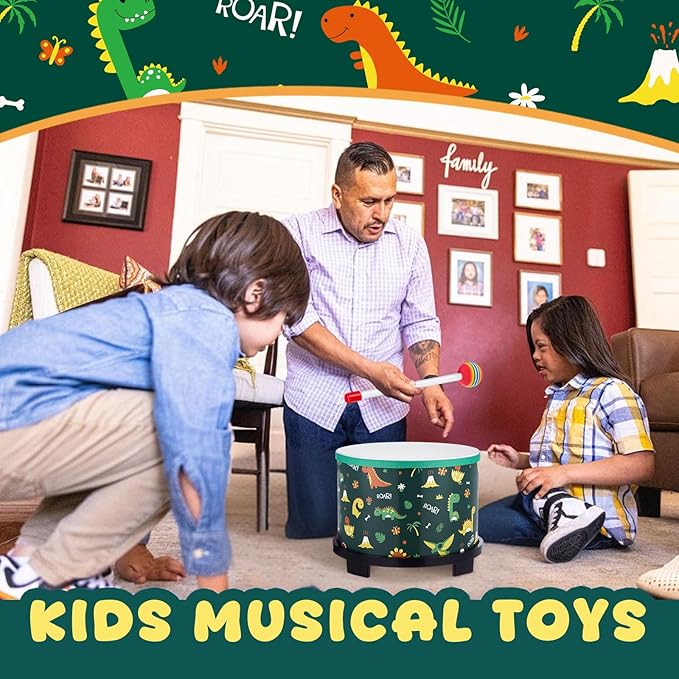- Dinosaur Style: unleash the joy of playing with our dinosaur style toy drum; Its exquisite dinosaur pattern is suit for young hands, making rhythm and coordination a playful learning experience; Not too big, not too small, at 8 x 6.5 inches/ 20.32 x 16.51cm, it's sized to meet children's daily learning and play needs effortlessly