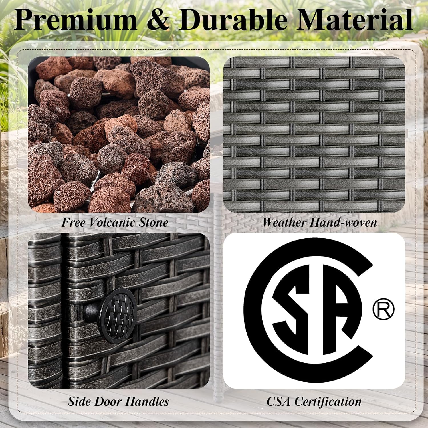 - 【Warm Bonfire and Auto-ignition Device】The gas fire pit table has a heat output of 50,000 BTUs and is equipped with an integrated electronic ignition that adjusts the flame to your desired temperature with the control button. Continuously provide you with enough warmth.