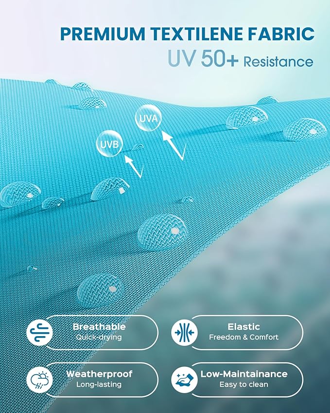 - Premium Textilene Fabric – Our pool lounge chairs feature innovative textilene mesh fabric which offers exceptional durability alongside superior breathability and quick-drying performance, ensuring air circulation and ventilation on hot days for optimal comfort