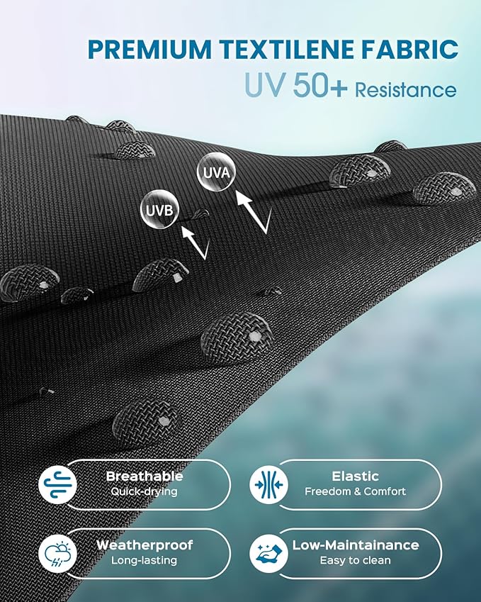 - Premium Textilene Fabric – Our pool lounge chairs feature innovative textilene mesh fabric which offers exceptional durability alongside superior breathability and quick-drying performance, ensuring air circulation and ventilation on hot days for optimal comfort