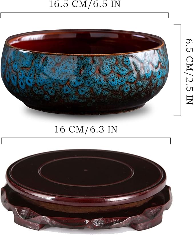 - 【Flower Pot Size】Package includes: 1 PCS succulent pots without potted plants, the dimensions are: 6.5 inches in diameter x 2.5 inches in height, 1 360° rotating flower pot round base, the dimensions are: 6.2 inches in diameter x 1.2 inches in height, the rotating base can also be used to place favorite things at will, showing different temperaments.