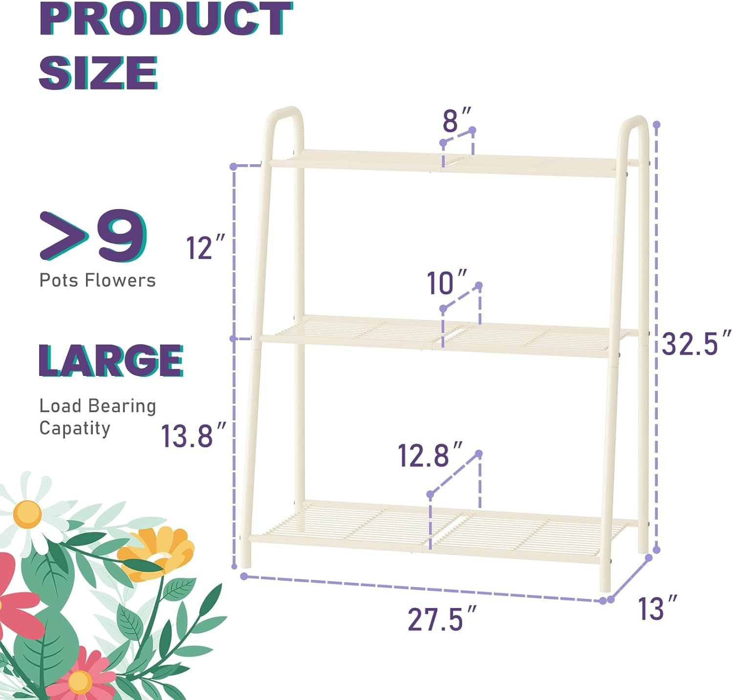 - MULTI-TIER DESIGN: Features 3 spacious shelves that rise in height to hold over 9 flower pots, making efficient use of space and great for placing a variety of plants in corners or along walls