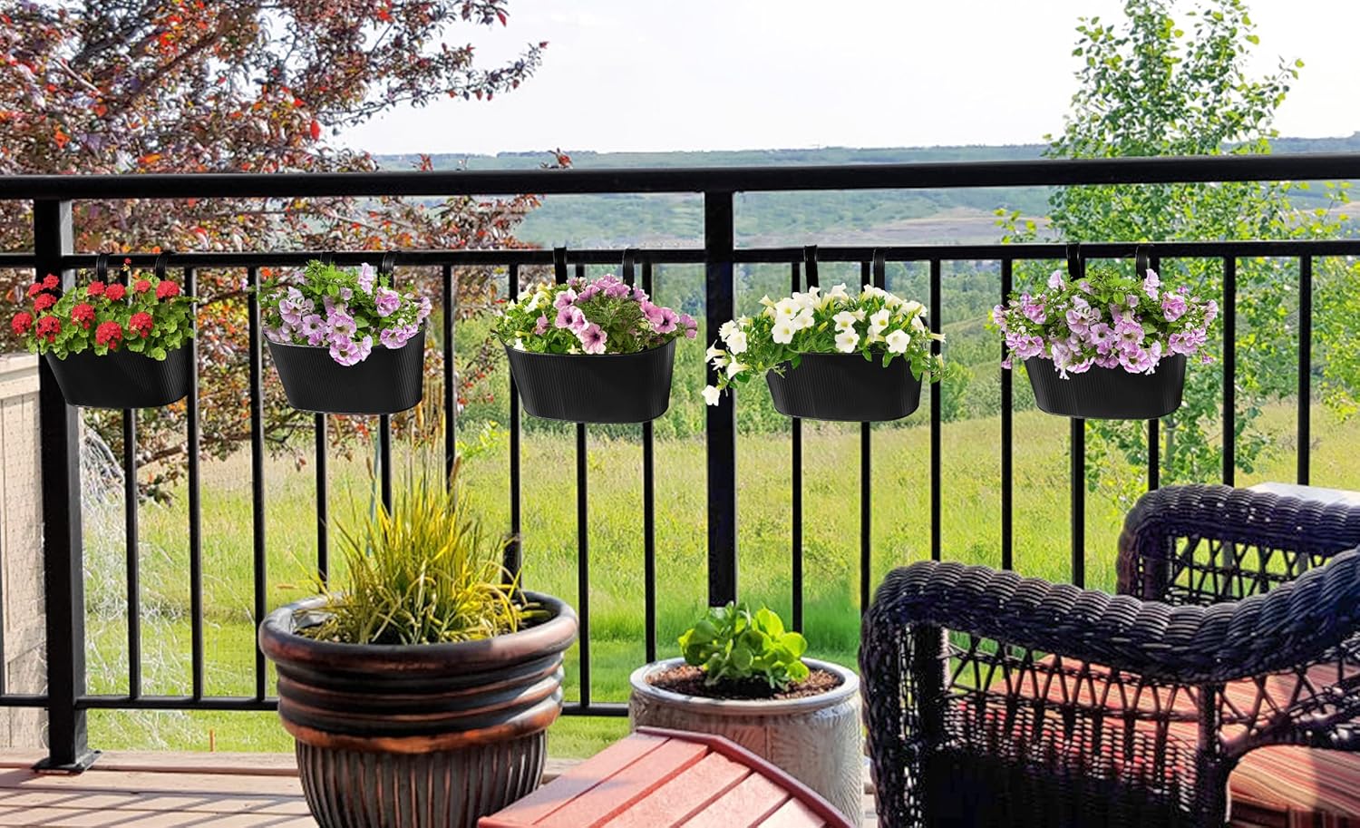 - Detachable Hooks and Drain Holes: Balcony rail planter comes with detachable hooks to attach to the fence or wherever you want to put. You can remove the hooks and they become regular planters. Design with drainage holes at the bottom. This feature guarantees that your plants won't be overwatered, promoting their health and longevity.