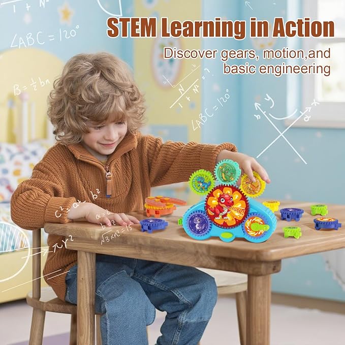 - 【Dual Power Modes】This gear toy supports both battery-powered motion (requires 3 AA batteries, not included) and manual spinning. Kids can observe how gears link and rotate, learning the basics of mechanical motion, energy transfer, and design. It’s a hands-on educational toy that teaches counting, sorting, and construction while introducing children to physical science and engineering principles through play.