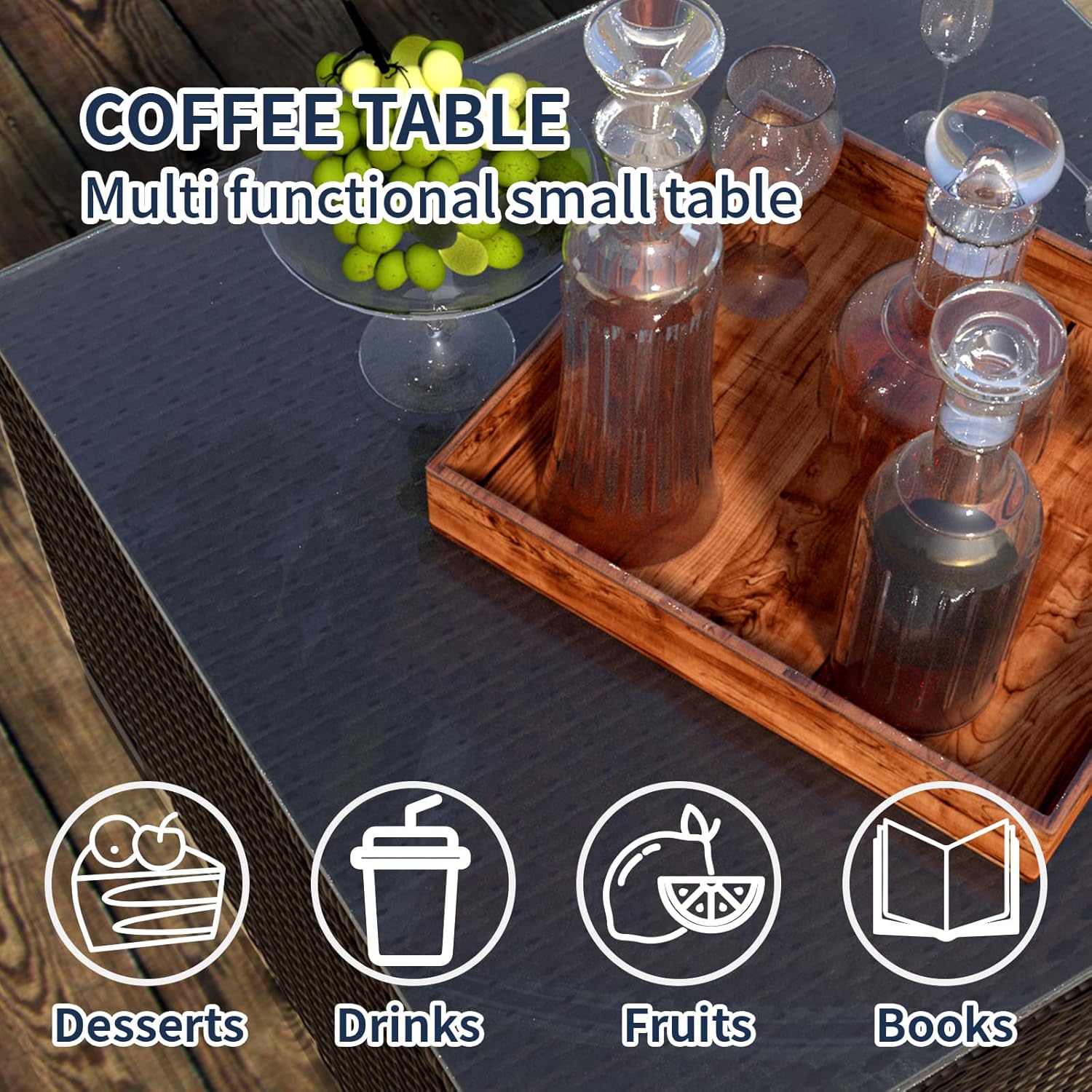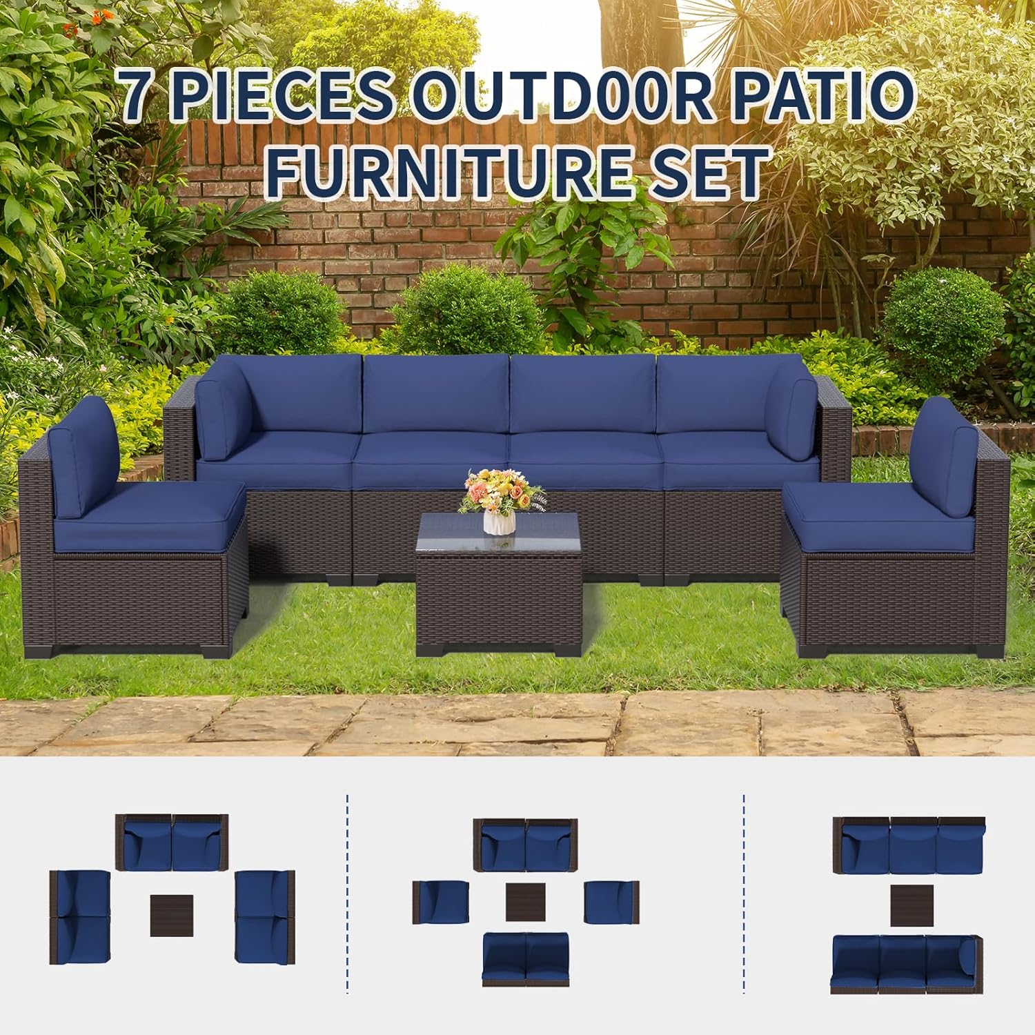 - 7-Piece Set: This patio set includes four center sofas, two corner sofas, and a functional coffee table. Whether you're hosting a gathering or enjoying a quiet moment outdoors, this set provides comfortable seating and a convenient surface for drinks, snacks, or decor