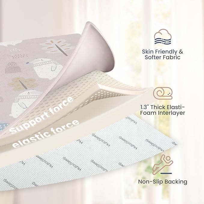 - 【Ultra-Soft 1.3" Memory Foam Cushioning】 – Designed for ultimate comfort, this baby play mat features a premium 1.3-inch thick elasti-foam core, providing superior support for crawling, playtime, tummy time, or naps. The plush yet supportive foam protects little knees and elbows while ensuring a cozy surface for relaxation.