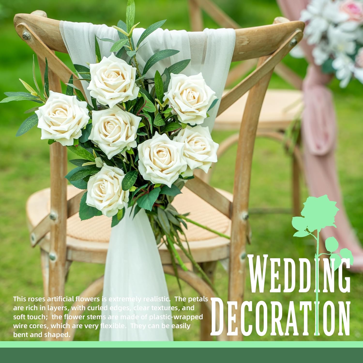 Fake Roses Faux Flowers 12PCS Silk Roses Artificial Roses with Stems Realistic Artificial Flowers Suitable for Indoor Home Decoration DIY Bouquet Wedding Decor Party Decor 16.5In (White)