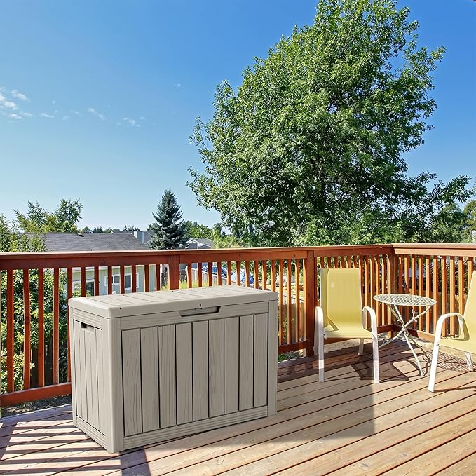 - Material: The patio outdoor storage box is made of the latest high-quality resin material, which makes this patio deck storage box waterproof, UV-resistant, anti-fading, and anti-bending protection, suitable for long-term outdoor use.