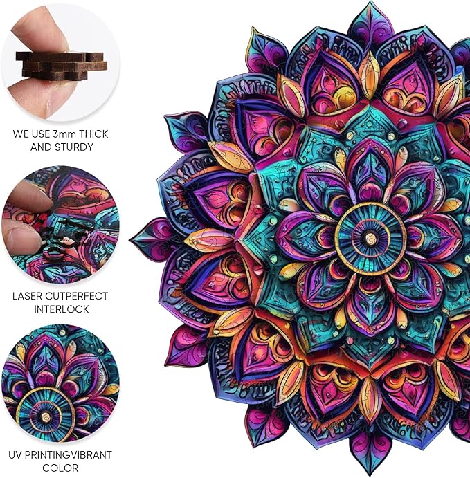 Jiroinlly Wooden Jigsaw Puzzles, Mandela Wooden Puzzles for Adults, 500 Pcs King Size 16.8'' x 16.9'', Luxurious Shaped Wood Puzzle, Beautiful Package, Best Gift for Adults and Kids, Family Game