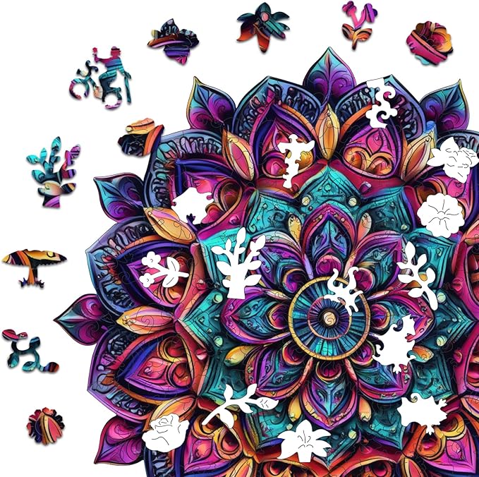 Jiroinlly Wooden Jigsaw Puzzles, Mandela Wooden Puzzles for Adults 200 Pcs, 11.2'' x 11.4'' Luxurious Shaped Wood Puzzle, Beautiful Package, Best Gift for Adults and Kids, Family Game