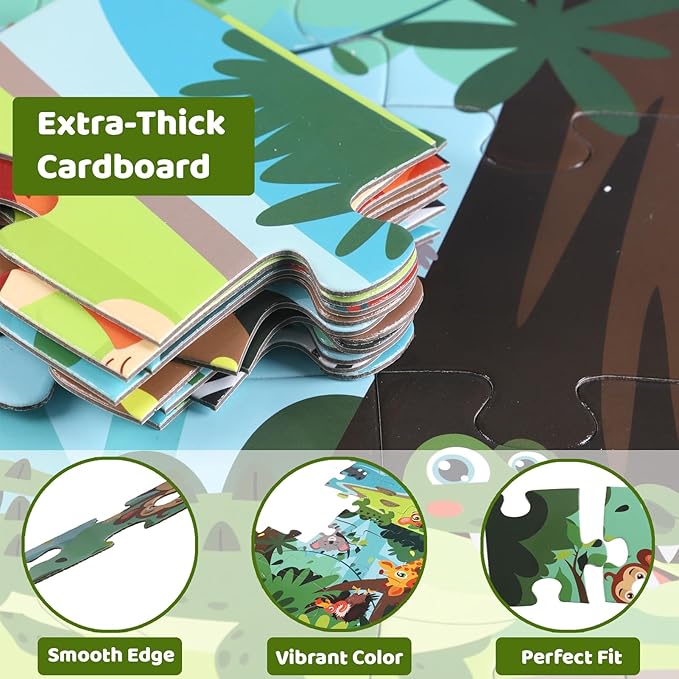 - Thoughtful Details for Peace of Mind:The puzzle pieces are large in size, so they’re hard to lose, and the difficulty level is well-suited for kids aged 3-8. All corners of the pieces are carefully smoothed—no sharp edges to risk scratches on little ones. Additionally, it’s made with a safe coating and non-toxic, eco-friendly ink, meets standard safety certifications, and is easy to clean for long-term storage, giving parents total peace of mind.