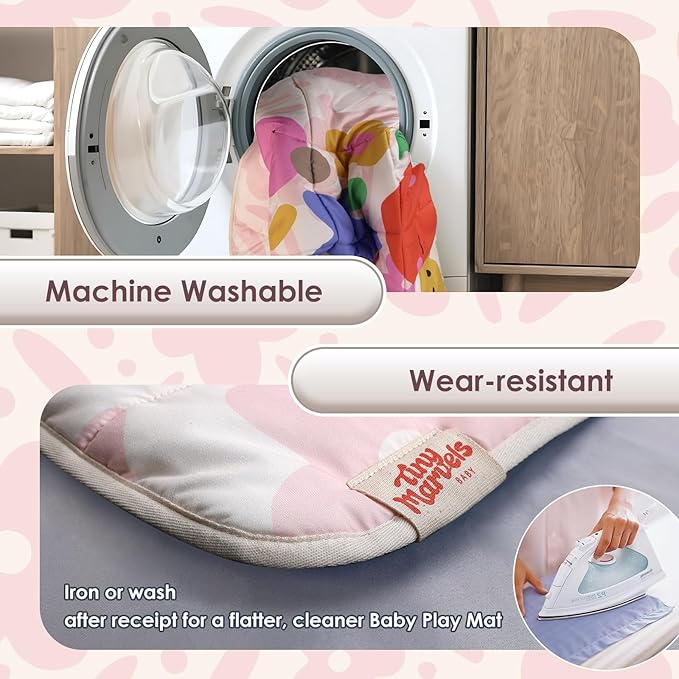 - Portable & Machine Washable - Lightweight and compact, the foldable mat is easily portable for playtime anywhere - just roll,clip,and go.Made from soft, durable materials, just toss it in the machine for a quick, hassle-free clean.A perfect, practical solution for busy parents