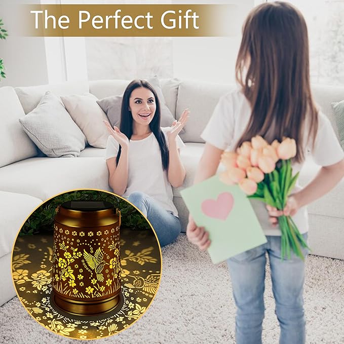 - Perfect Garden Decorative Design:The 2025 new solar Hummingbird lantern waterproof outdoor lights retro appearance with bronze color and hollow out metal veneer,and hollow out metal veneer,The solar lanterns casts bright and led warm light in darkness,Accompanied by gorgeous and graceful hummingbird and flower patterns,Adding a beautiful atmosphere to the surrounding environment.