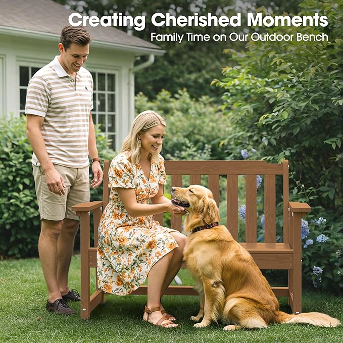 Ciokea 46" Heavy Duty Outdoor Bench, HDPE Weatherproof Garden Benches, Durable 2-Person Benches with 660 Lbs, Waterproof Patio Porch Bench for Outside Balcony Deck Backyard, Teak