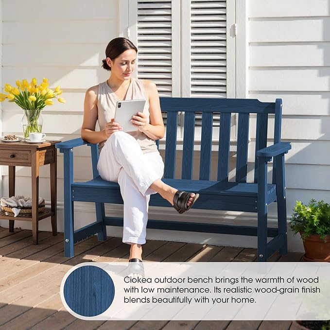 Ciokea 46" Heavy Duty Outdoor Bench, HDPE Weatherproof Garden Benches, Durable 2-Person Porch Benches with 660 Lbs, Waterproof Patio Bench for Outside Balcony Deck Backyard, Navy Blue