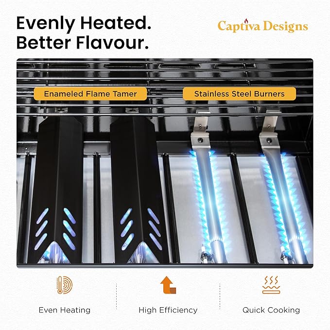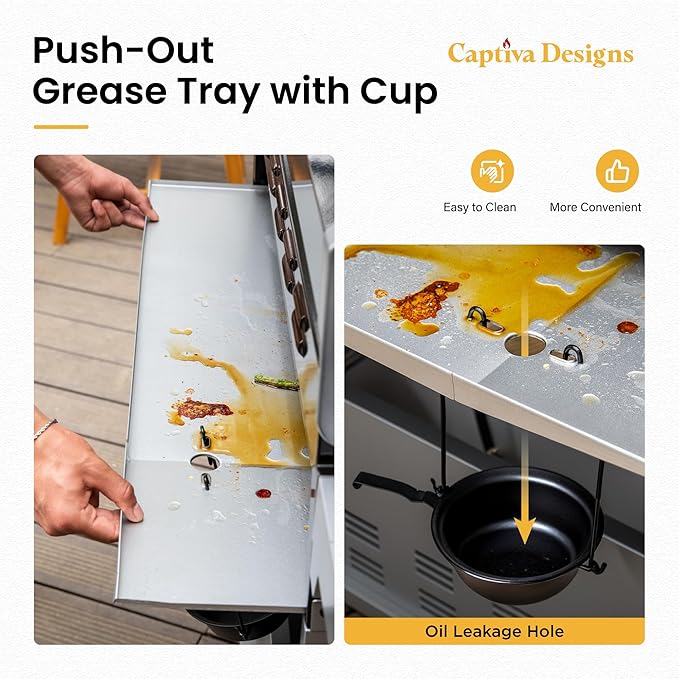 - 𝐎𝐮𝐫 𝐒𝐞𝐫𝐯𝐢𝐜𝐞: Captiva Desings provides you with professional customer service both before and after your purchase of propane gas grill. Please let us know if you have any problems , we will reponse you within 24 hours, you can rest assured that your investment will be protected