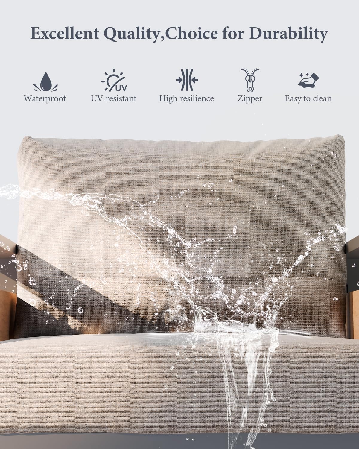 - ⛱️【5.5" Removable & Machine-washable Seat Cushion】 This outdoor furniture's cushion covers are removable and machine-washable, making cleaning effortless and keeping your set looking like new. Seat cushion of the set comes with high-density sponge, better for upper-body support, cushions are designed to be stable, keeping them from sliding around.