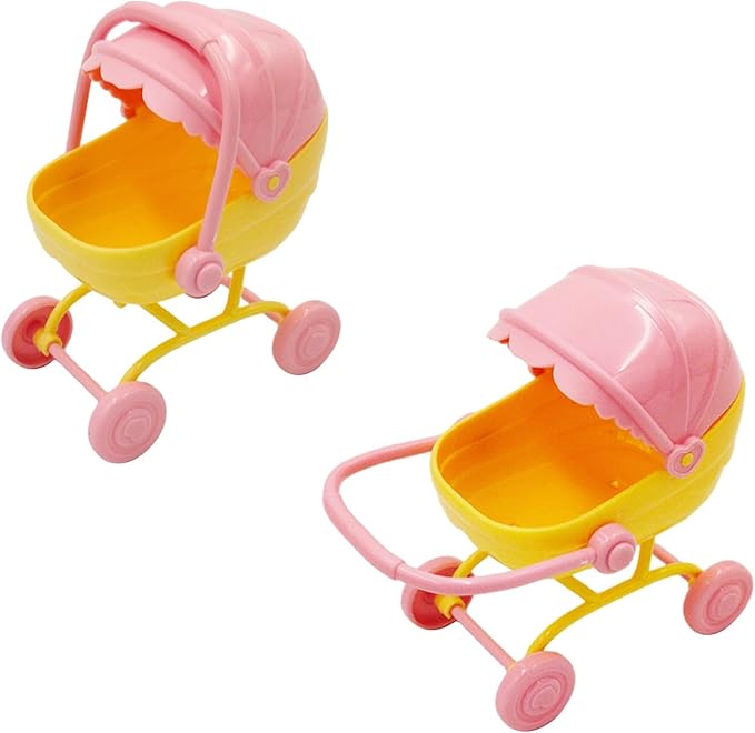 Mini Dollhouse Furniture Set, Baby Stroller and High Chair, Pink and Yellow Miniature Accessories, Kids Pretend Play Toys