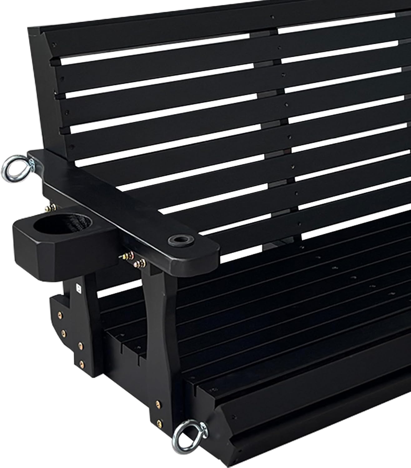 - 𝐁𝐨𝐧𝐮𝐬: Two cup holders added to both sides don't take up space in the seat; it comes with two large spring hooks for reducing shocks; two rubber grommets for protecting the wood where chains go through