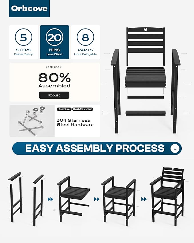 - Easy to Assemble, Ready to Relax: Simple to put together with pre-drilled holes and all hardware included. Use them as outdoor patio chairs set of 2, black patio chairs, clearance Adirondack chairs, or even in pool chairs. Perfect for outdoor camping chairs, outdoor lawn chairs, or casual patio dining chairs.