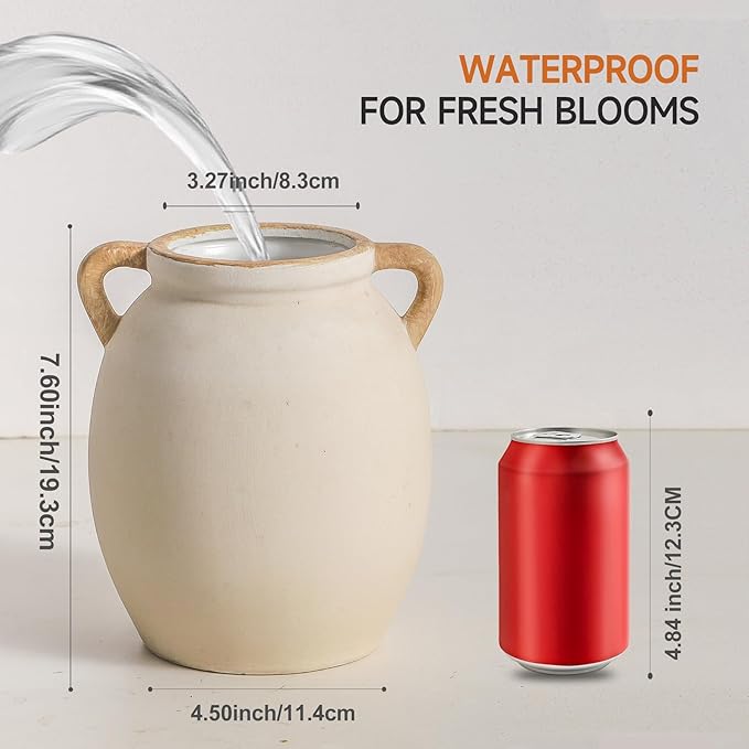 Ceramic Flower Vase 7.6 inch Farmhouse Rustic Vase Decorative Pottery Terracotta Vases for Home Decor Table Mantle Fireplace Living Room Bathroom Wedding Centerpiece