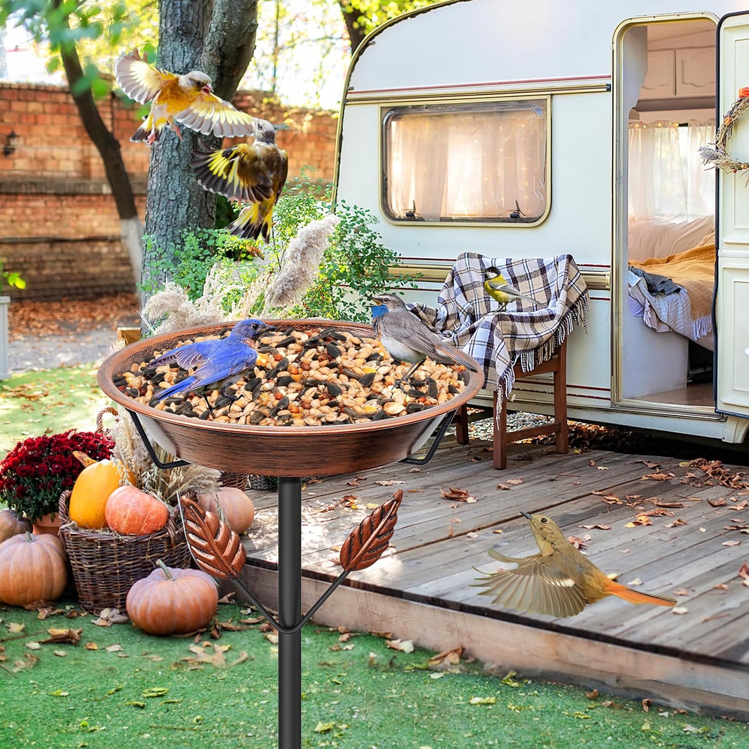 - 【Wide range of Applications】 These retro birdbaths are great decorations for gardens, lawns, Our garden bird bath can be used all year round. Use bowls as wooden stakes for bird baths, bird feeders, and even place solar fountains or LED floating candles to create an atmosphere in the gardenpatios, etc.