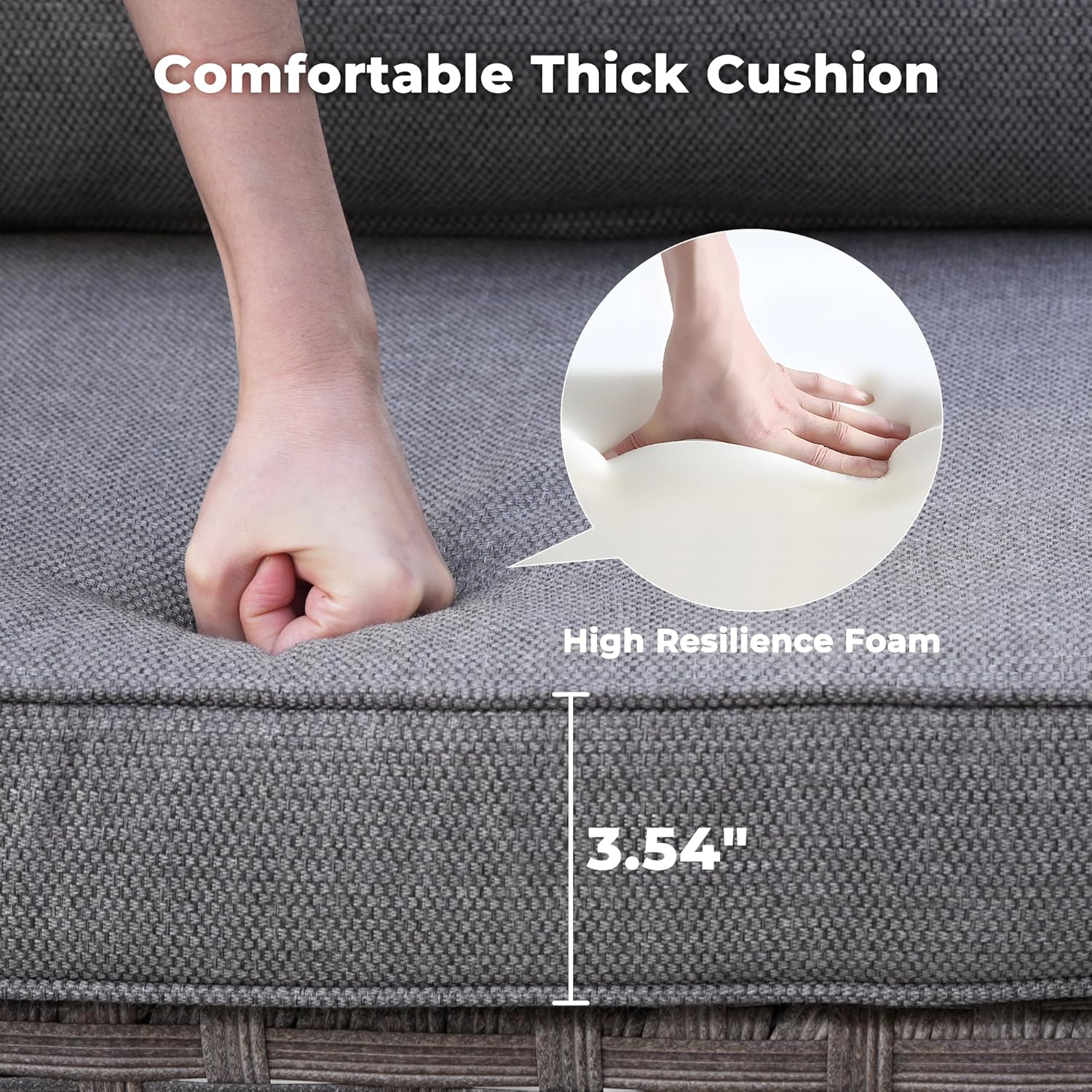 - All-weather Wicker Rattan: Our outdoor sofa sets have very durable wicker rattan for all-weather use and a natural texture with good coloring. The high-quality patio seating made of powder coated steel frame ensures good strength and stability.