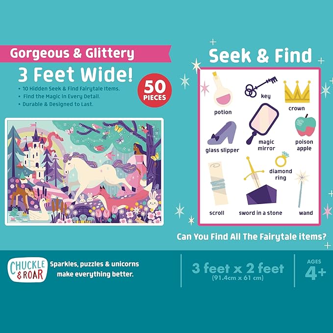 Chuckle & Roar Educational 50 PC Floor Puzzle Glitter Fantasy Fun Edition