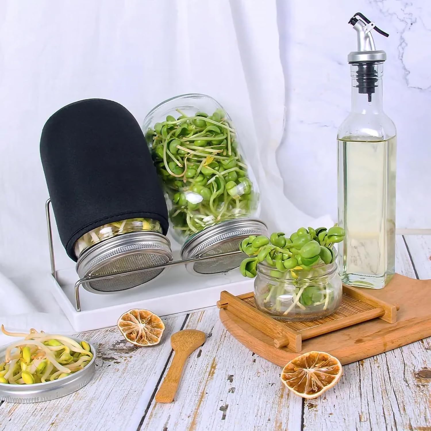 - MAKE SPROUT EASIER - Our sprouting stainless steel stand provides optimal drainage and airflow angles for jars, and keeps seeds&sprouts from rotting. Make your seeds sprout successfully every time, even a novice can sprout easily! Also, the shade sleeves will allow you to grow longer, straighter, and sweeter sprouts.