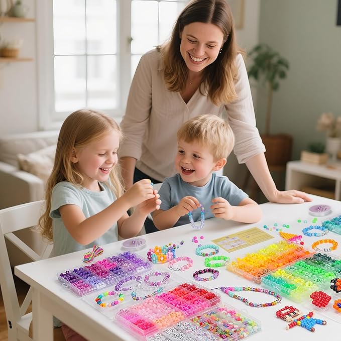 - Ideal Gift for Kids & Creatives: This pony beads kit packaged in a neat, gift-ready box, this kit is a wonderful present for daughters, nieces, grandkids, or craft enthusiasts. Whether for birthdays, Christmas or other festival, it's a thoughtful gift that sparks joy—who wouldn't love making their own glittery bracelets, glowing keychains, or personalized necklaces? It's more than a kit—it's a way to make memories and one-of-a-kind treasures