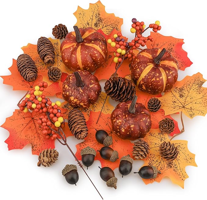 - Great Festival Decoration: Fall theme decoration combo is also perfect for crafts lovers to DIY front door wreath or other DIY projects. You can choose your favorite combination for different DIY purposes. Perfect for fall tabletop decorations, seasonal bowl display, fall door wreath, Thanksgiving dinner centerpiece, fall wedding decorations, banquet place card settings, seasonal gifts, floral arrangements, autumn art projects' props, photography props and more.